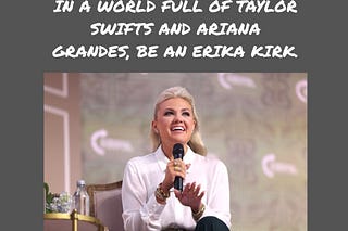 I just read a post on a friend’s social media encouraging us to be more like the Erika Kirks of the world, instead of the Ariana Grande and Taylor…